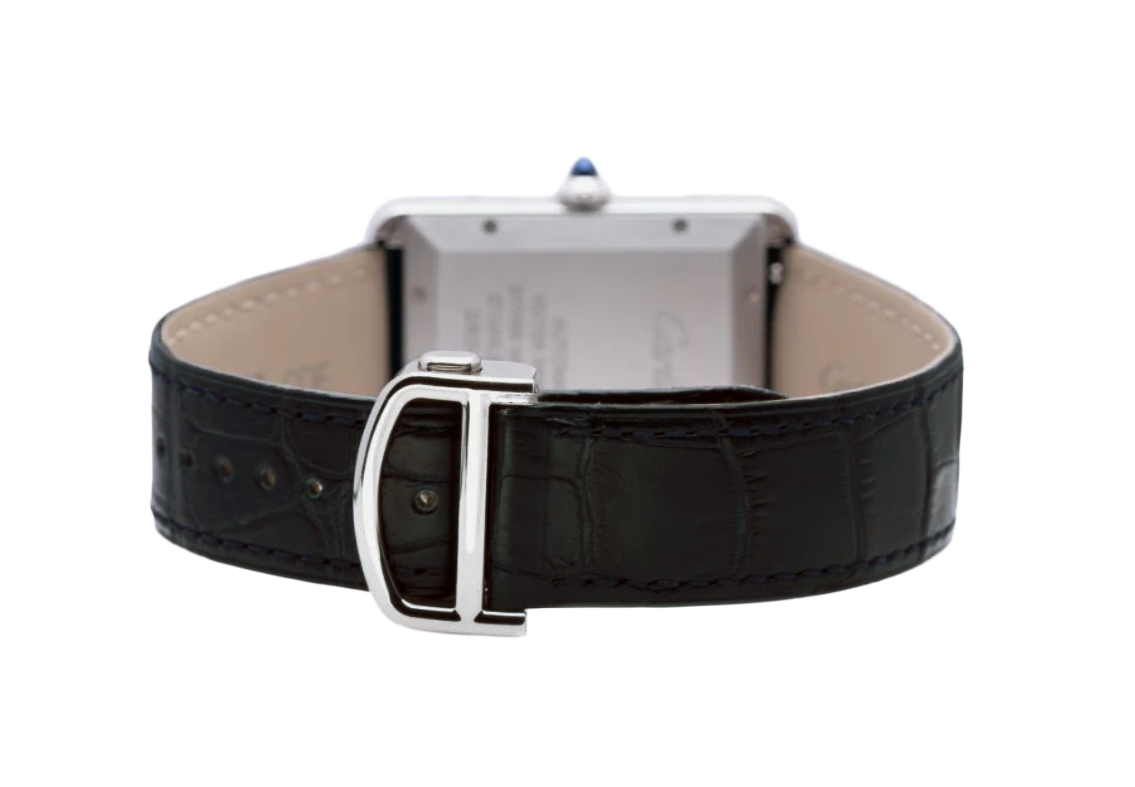 The Cartier folding buckle is designed with precision and elegance. It features a hinged mechanism that allows the clip to fold and unfold smoothly. When you put on your watch, you can easily open the buckle, slide the strap through, and then fold it back to secure the watch on your wrist.